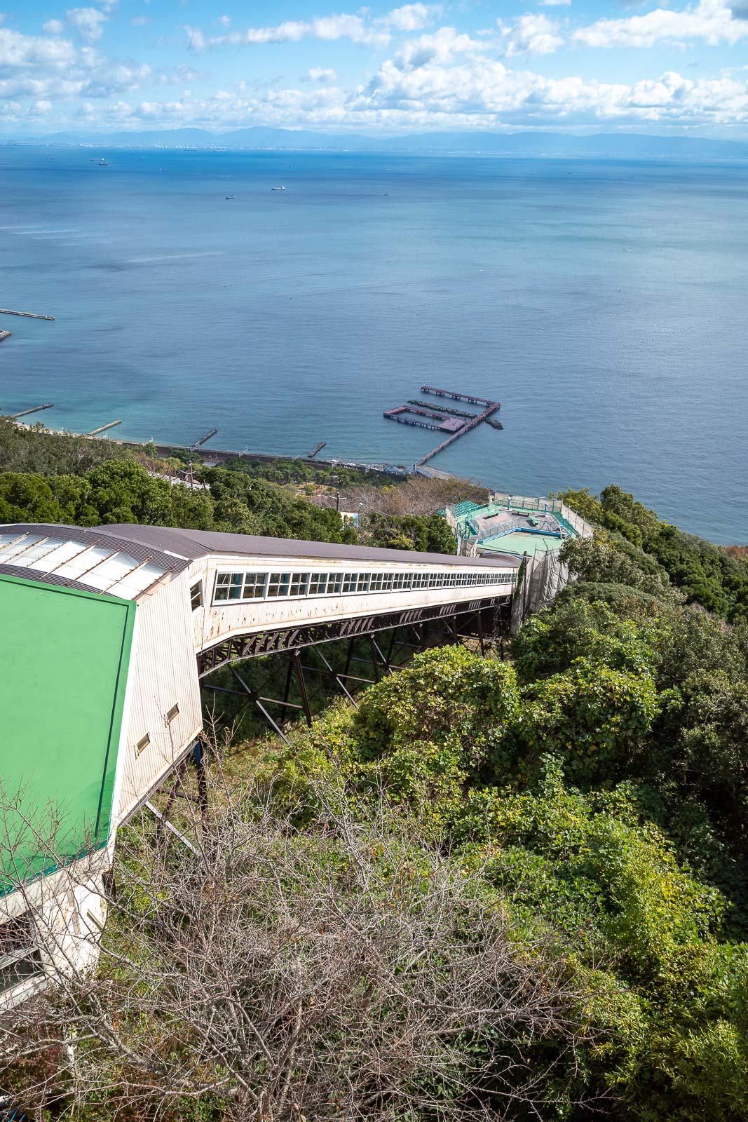 Here is one of the cable car options to go down, fully enclosed for some reason.