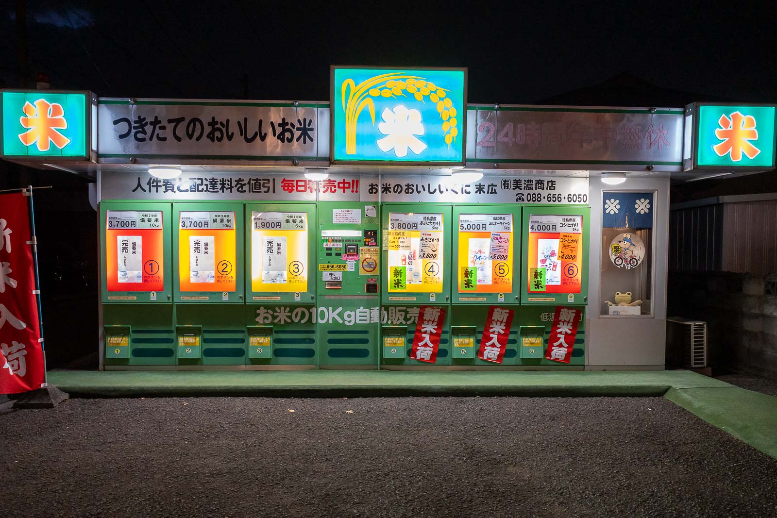 Because I can read Chinese characters, I now realise this is a rice vending machine station. There are a few grades on offer, the most expensive being 5kg for 5,000 yen ($50). I don't think we have unmanned rice vending stations in Australia. Also, new style bank notes not accepted, 500 yen coins not accepted, yet it is cash only. It really seems as though they prefer to not sell rice.