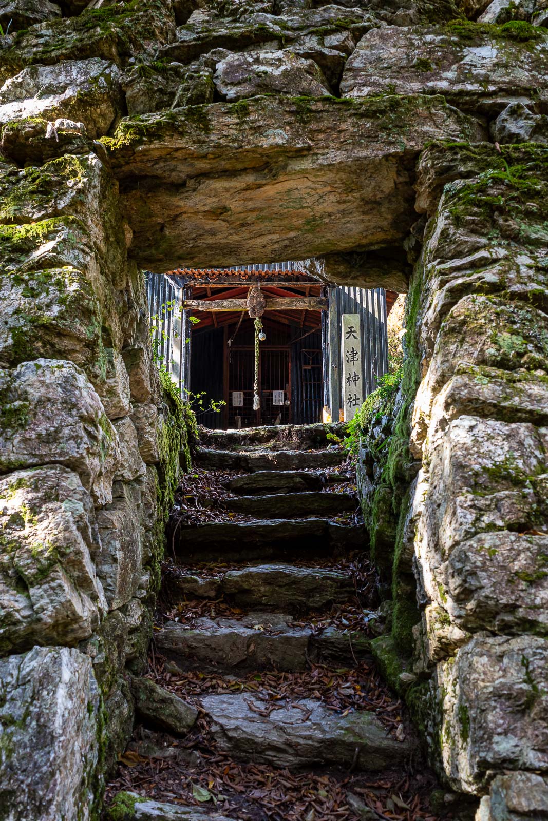 Arriving at the summit of Nakatsumine (I think), and you have to go through a hole in the wall. Maybe the shed through the hole is a shrine, but I don't count it as one.