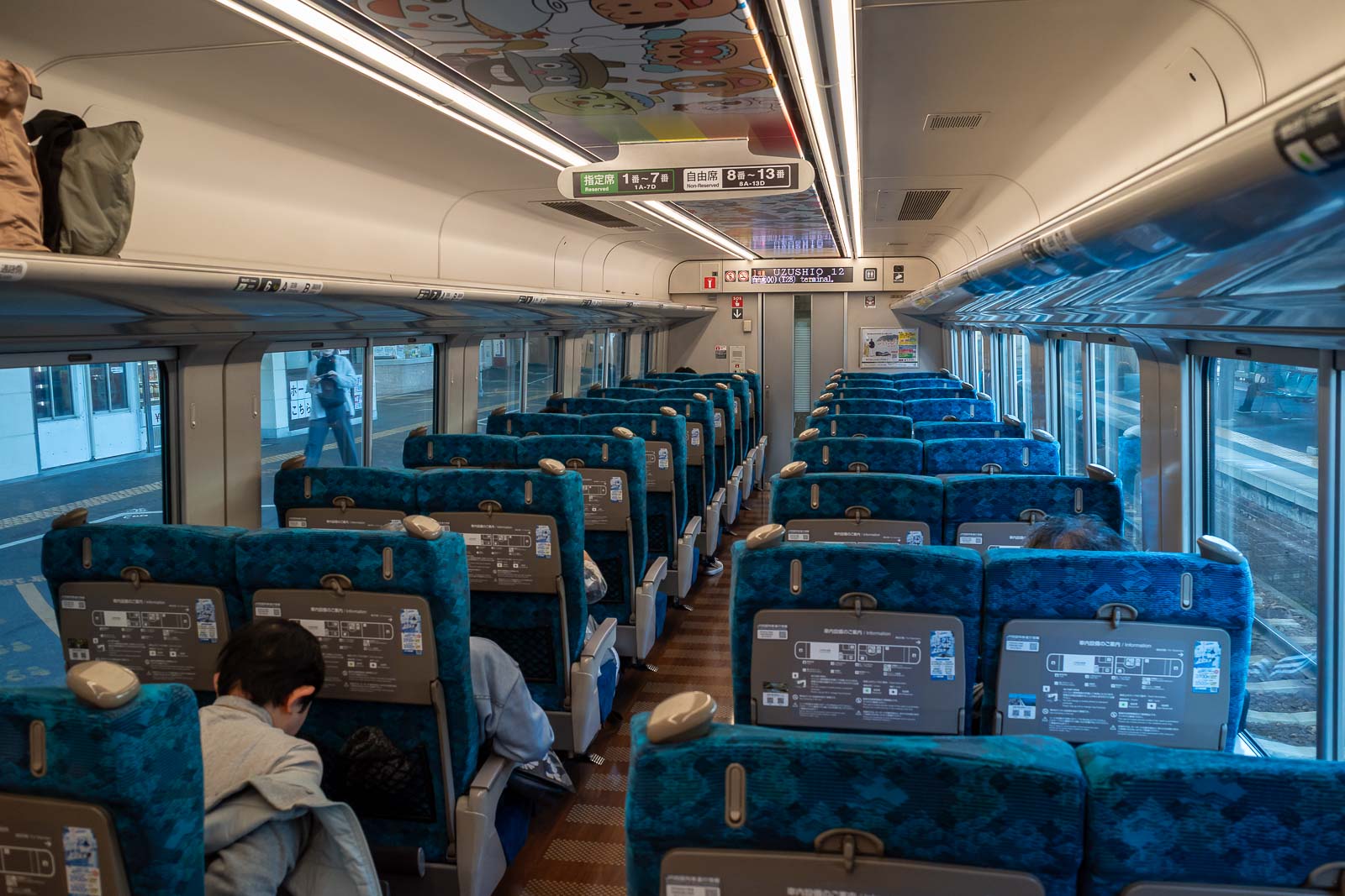 Inside is a train. I was surprised it is only 2 carriages. Admittedly the bus is cheaper, maybe most people take the bus, but does the bus have cartoon characters on the ceiling, probably.