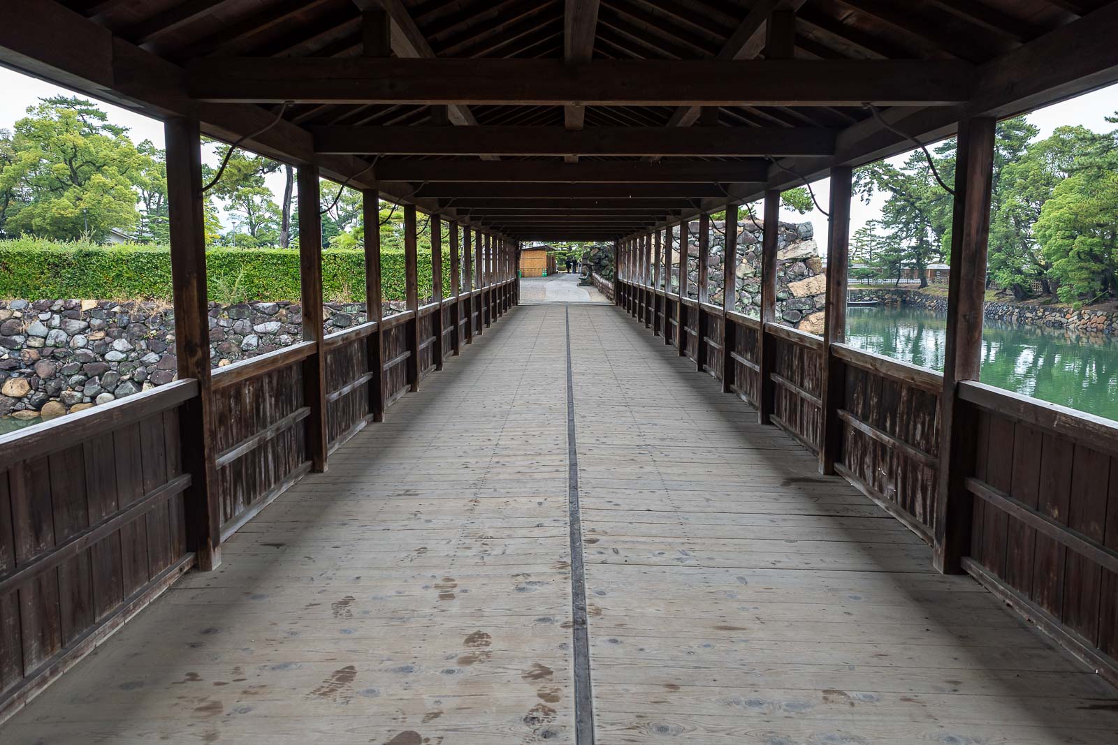 Over to the castle now (entry $2), which is about 2km away with the entire journey between garden and castle under a covered shopping street. Here is an old bridge. Not sure if old.
