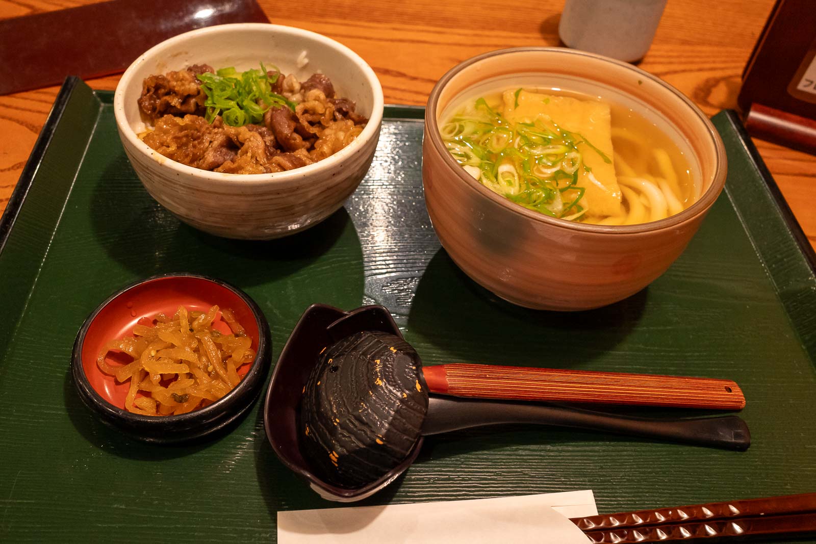 And for dinner, soba, with fried tofu, and beef on rice. So noodles AND rice. Hmm. No vegetables of course, the Japanese are terrified of them.