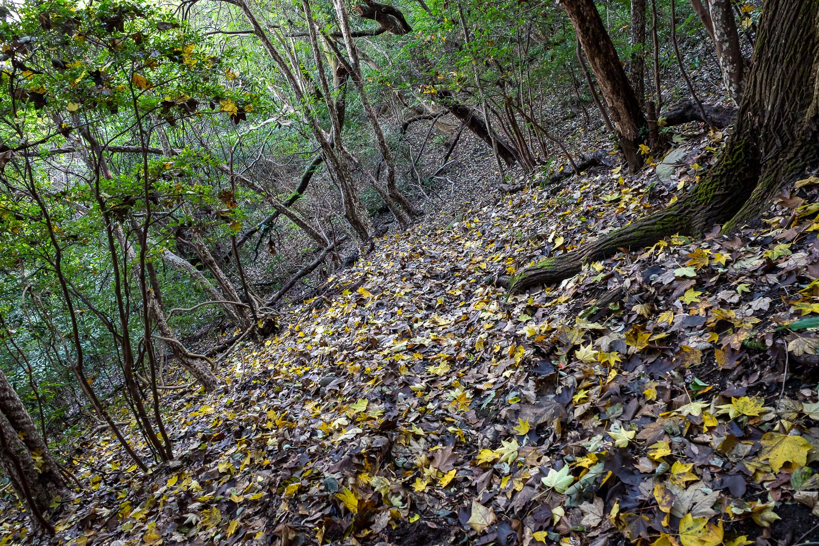 I cannot really convey it properly in photos, but large sections of this trail were on a 45 degree angle to the hill, muddy and slippery, with my outside foot constantly sliding a bit, and the risk of falling and sliding down a muddy hill.