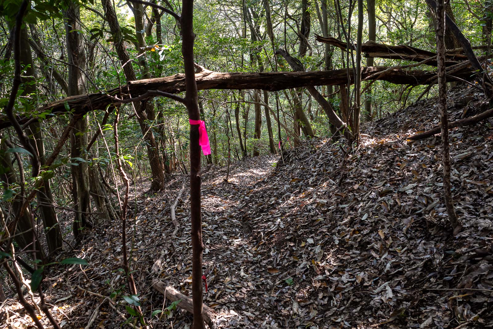 But then I was back on muddy slippery poorly marked trails, follow the pink ribbons.