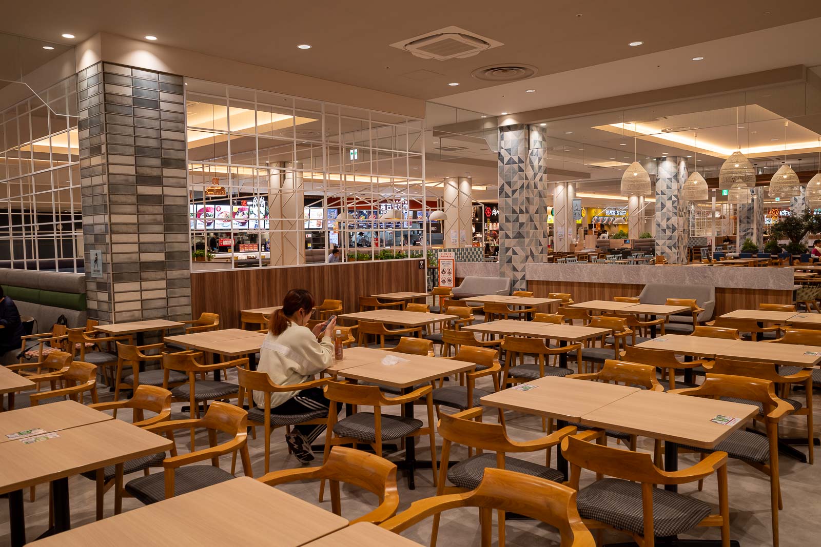 An excellent food court. It was called Food Marina, despite being far from the ocean. I like all the empty seats, allowing me to sit far away from anyone.