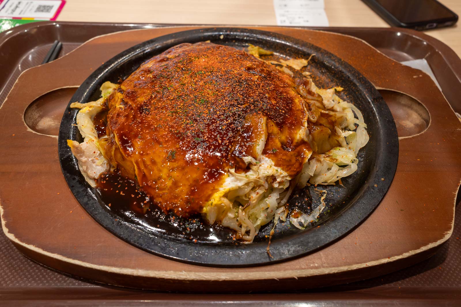 And here it is, Okonomiyaki. 1,000 yen. A real bargain as it was delicious. To get to Okayama tomorrow takes about an hour on the slow train, I will have to invent new ways to make that take all day.