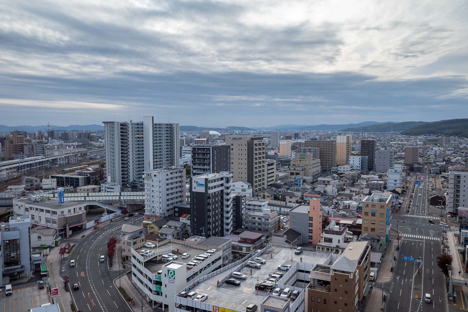 And finally, my room has a fantastic view. I can see the bullet trains coming into the station on the left. This is actually the quiet side of the city, the other side of the station has a lot of bigger buildings.