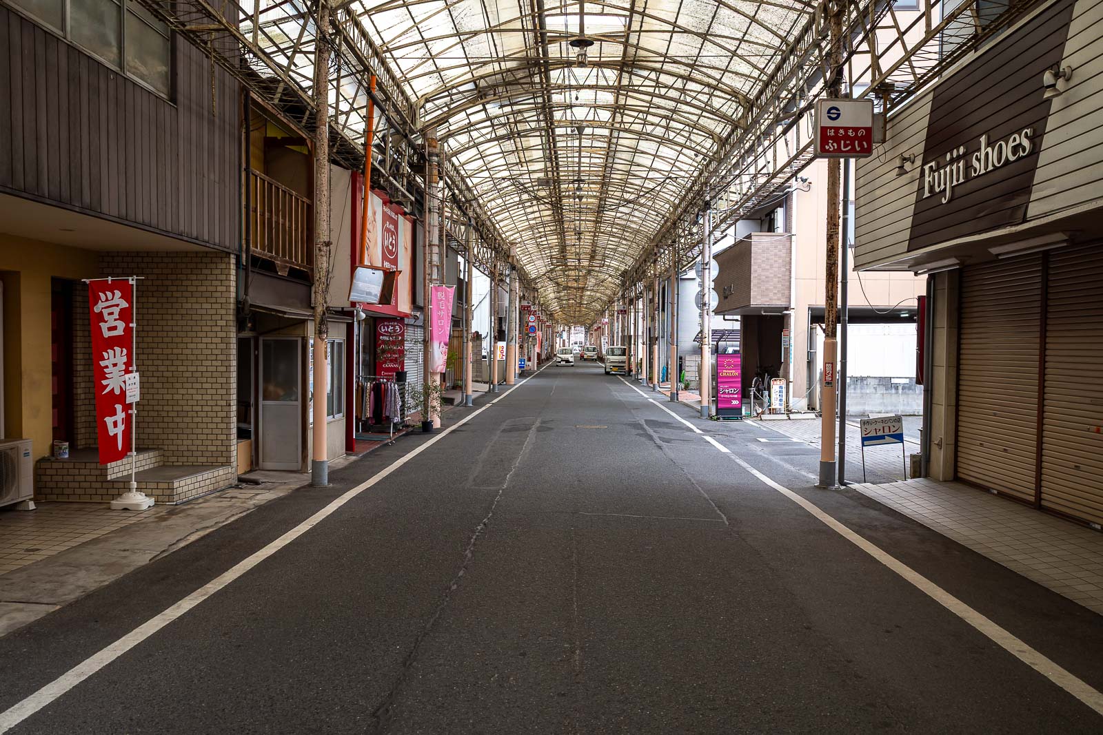I arrived back at the station 30 minutes early for the train, so I had time to wander the city. This is what they call a Shotengei here, they covered an actual road, with full speed traffic coming along it. I suspect it was once closed off to traffic, but has now reverted to being a regular road.