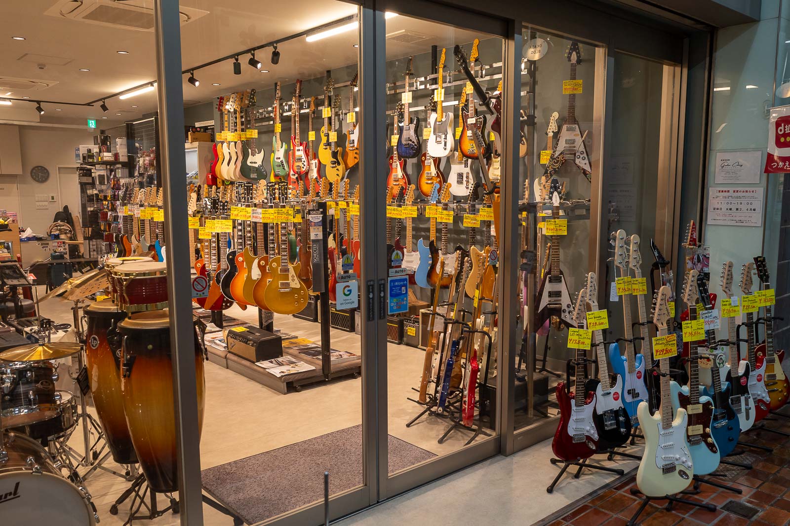 I found the guitar shop! Cheap guitars only, nothing I was interested in looking at. There were also numerous saxophone stores, including one called 'windy passage'.