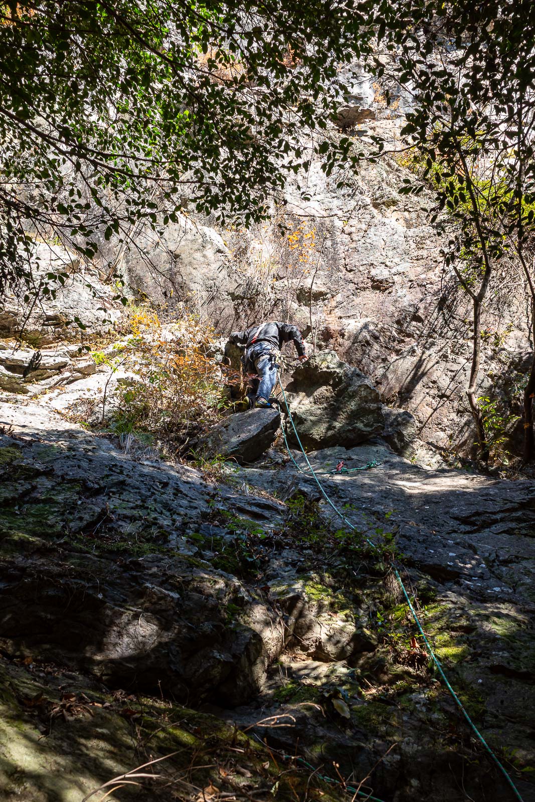 Then I spotted some shoes and a bag and thought someone had been eaten by a bear who undressed him first. But above me was a guy rock climbing on his own. The only person I saw for the first few hours, until the summit of Mount Odake.