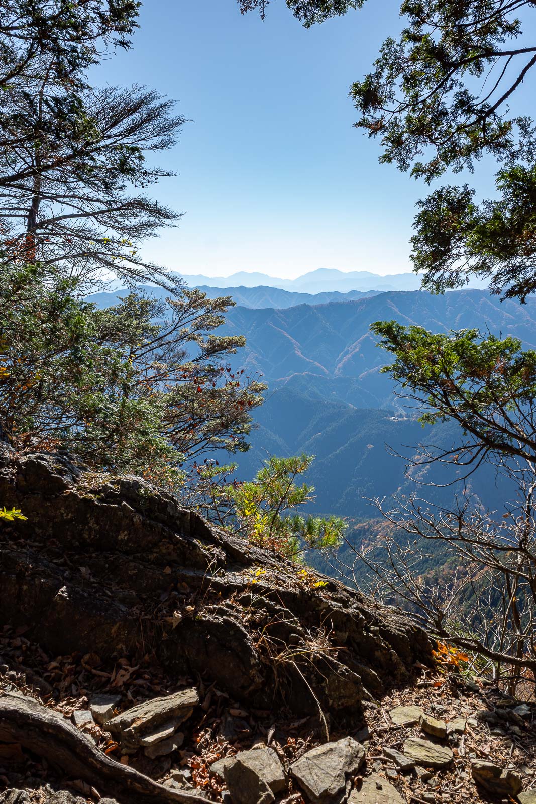 Rocks and far away mountains make for a good view. Not even a single cloud in the sky today.