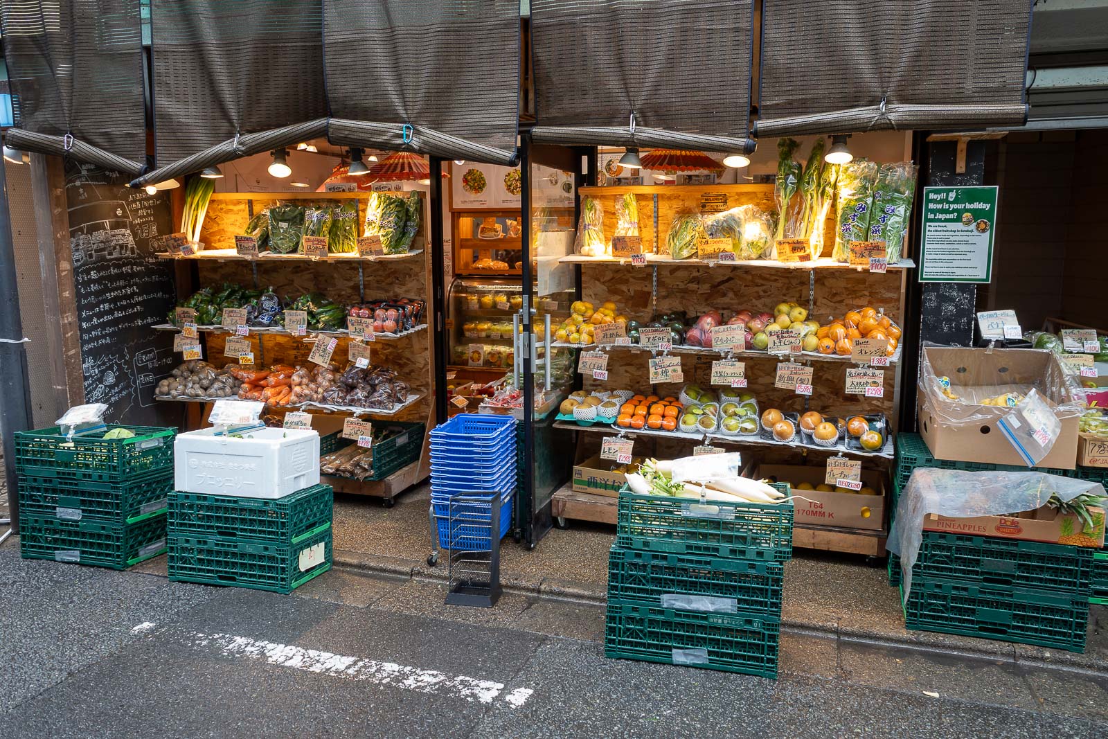 The streets around the temple are mainly shops selling waving cats, but also vegetables.