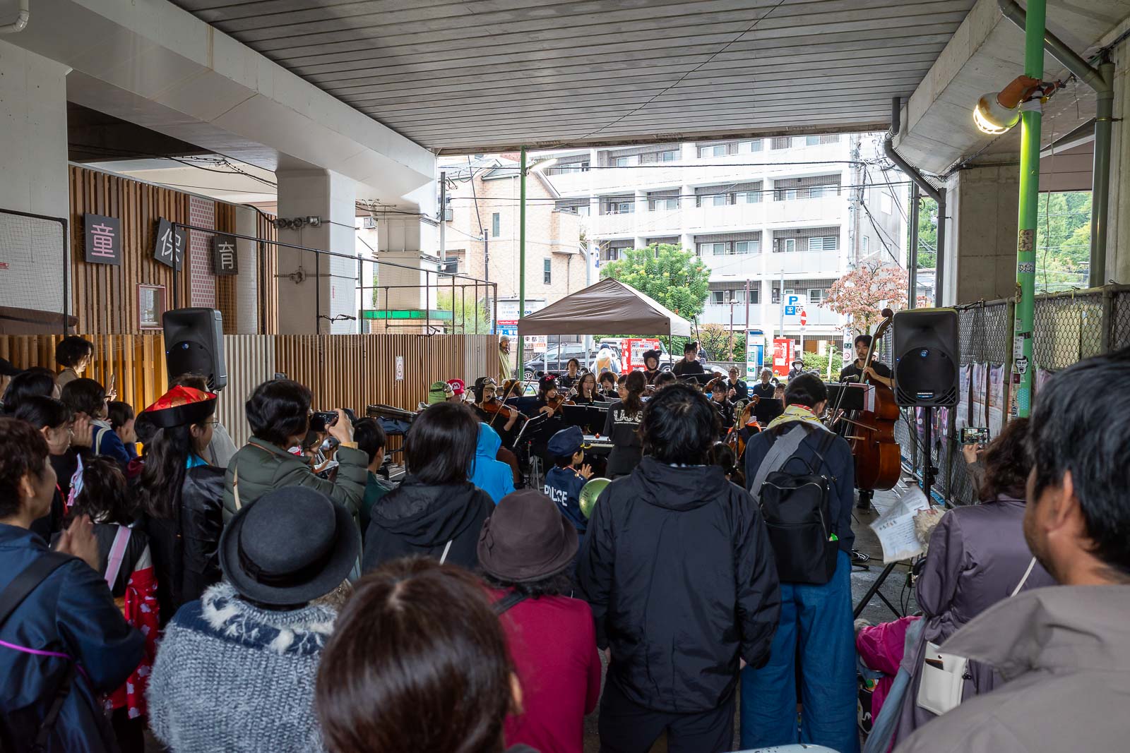 And then the shocking disappointment. Cat's Halloween is nothing more than a local school band wearing silly hats playing the theme from Titanic and a street performer blowing up black balloons. Halloween lasts about 3 months in Japan.