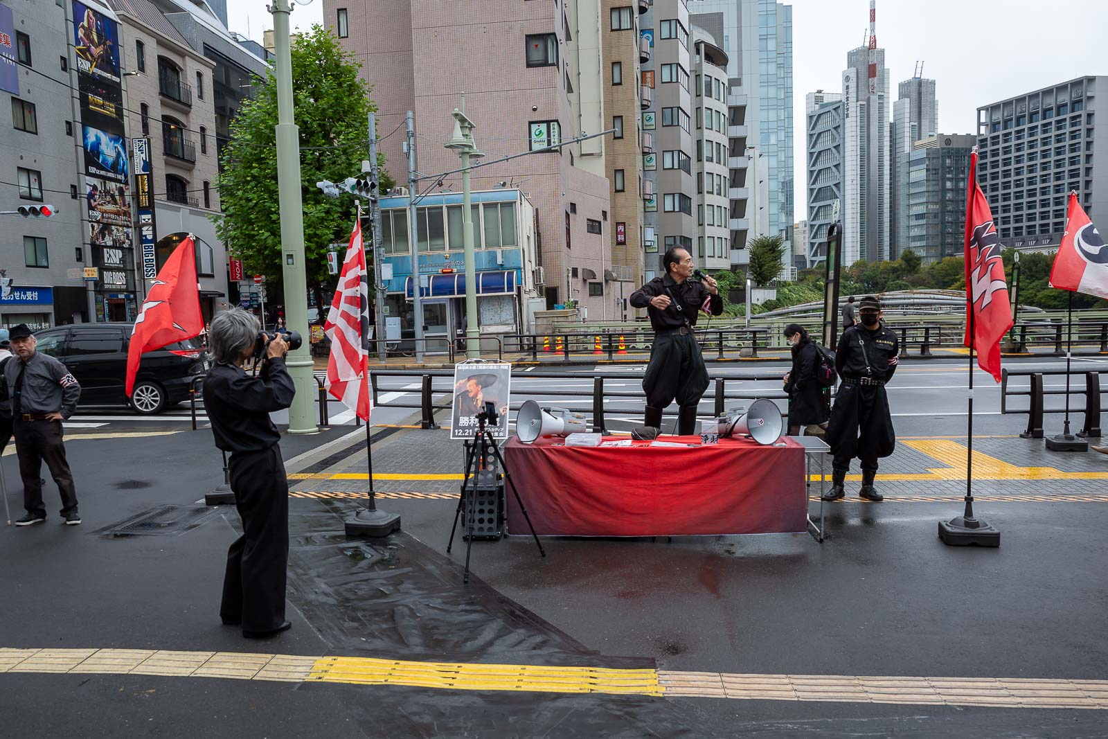 Behold, Nazi's. They hate it when I film them and wave and give a thumbs up and peace sign while they are preaching about destroying anyone without pure Japanese blood. A lot of their henchmen hide their faces, and the police are always there filming them too.