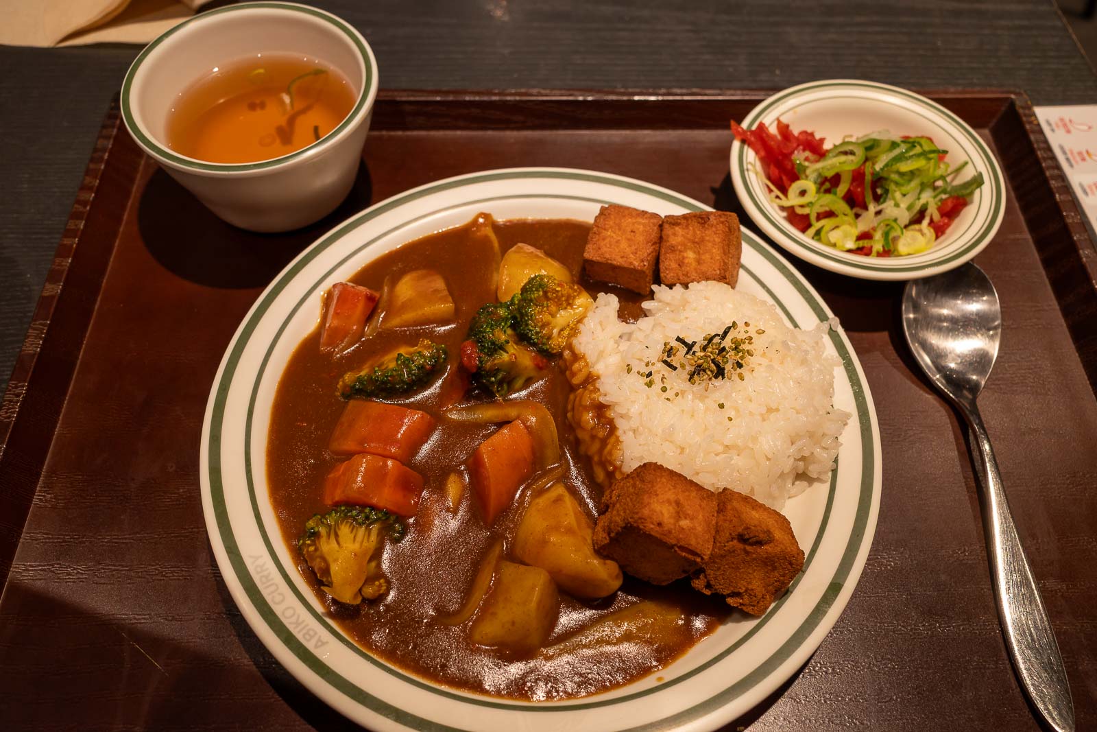 And finally, my curry. Tofu and vegetable. This is From Abiko curry, which I think is better than Coco curry, which they have here also. I feel as though Abiko is like Coco used to be 10 years ago. Tomorrow is a hiking day. It will be cloudy.