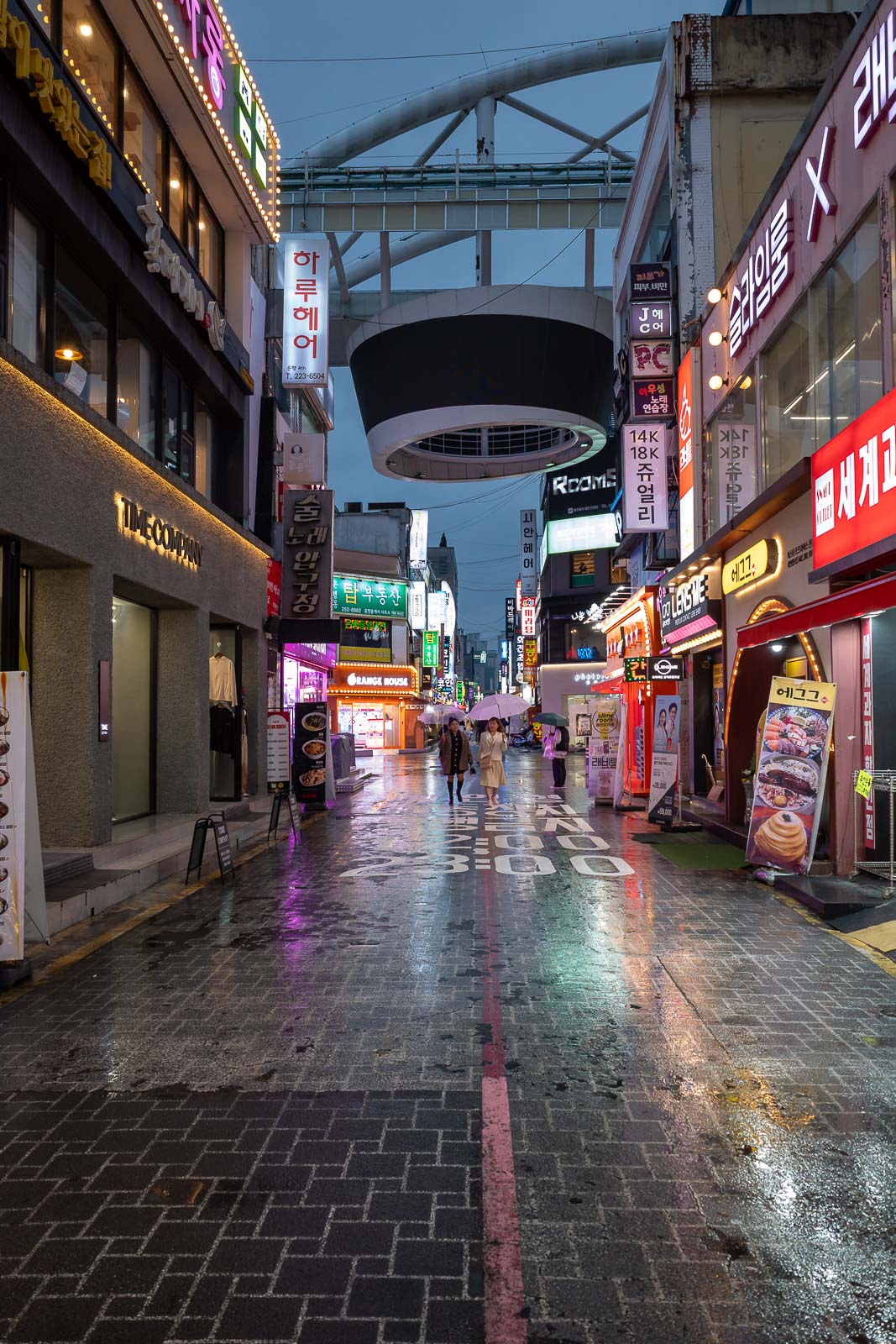 Now for the nightlife and restaurant area near the station, site of the famous sky road...
