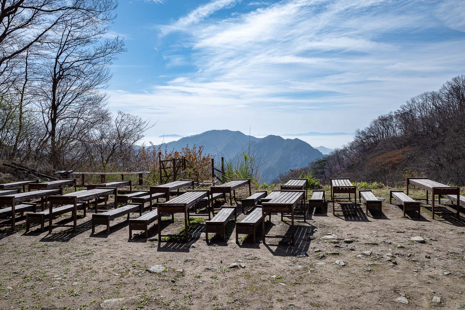 Despite the great view of the sea of fog, nobody is here to enjoy it.